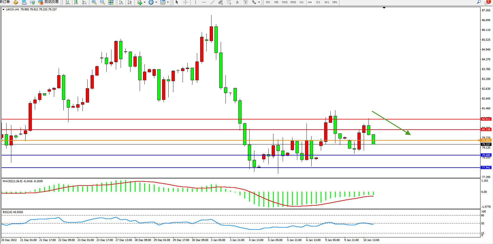 布油UKOil——4小时K线图显示: