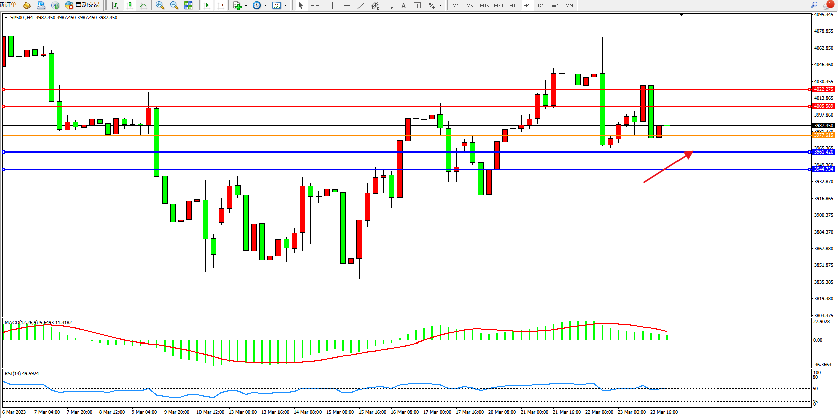 标普SP500——4小时K线图显示: