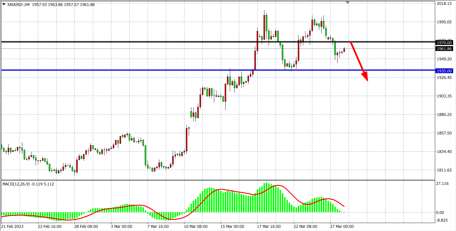 现货黄金XAUUSD四小时图