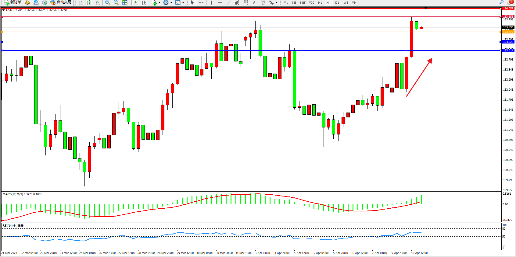 阻力位:133.853  134.057