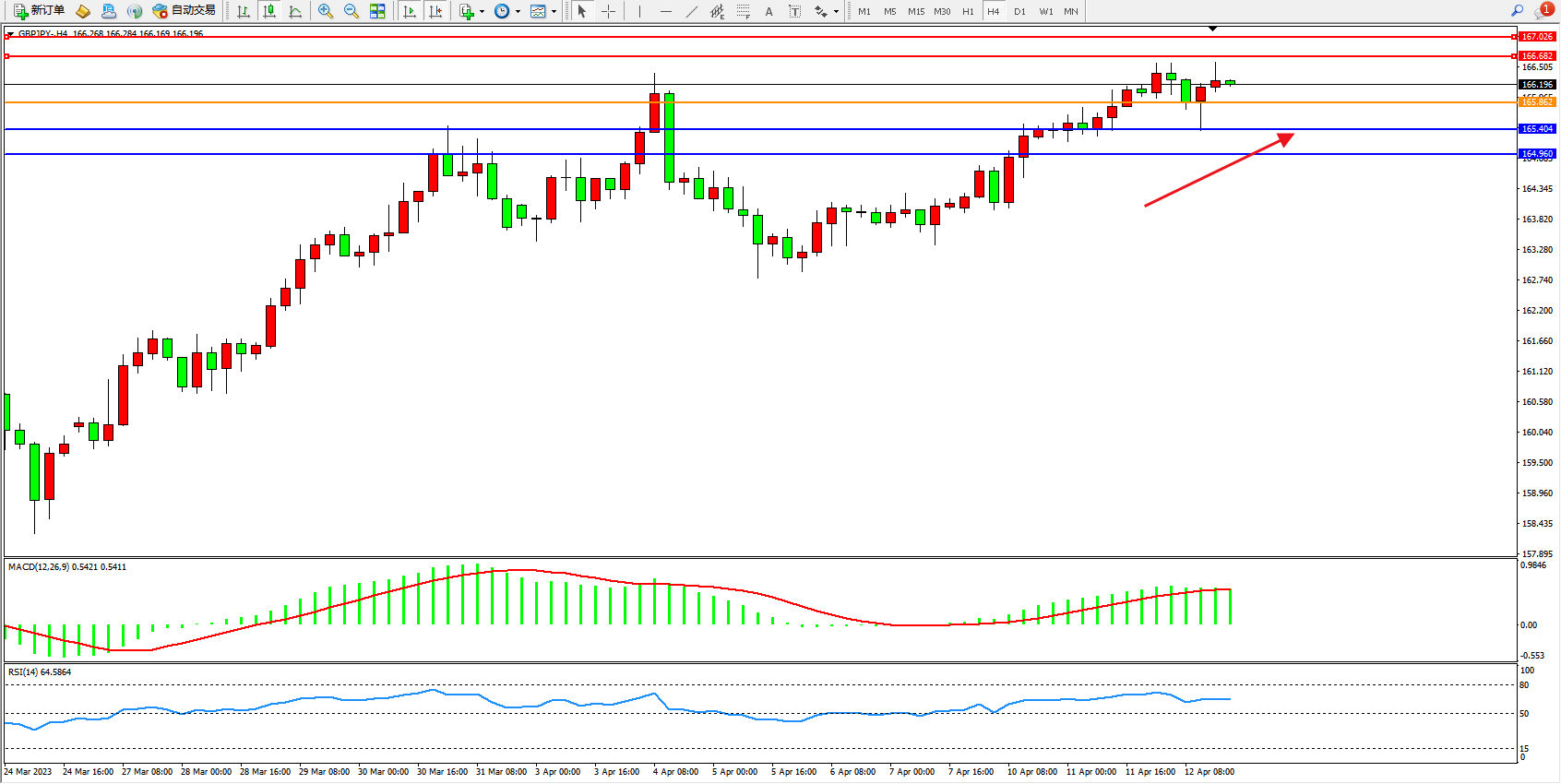 交易策略:165.862上方看涨,目标166.682 167.026