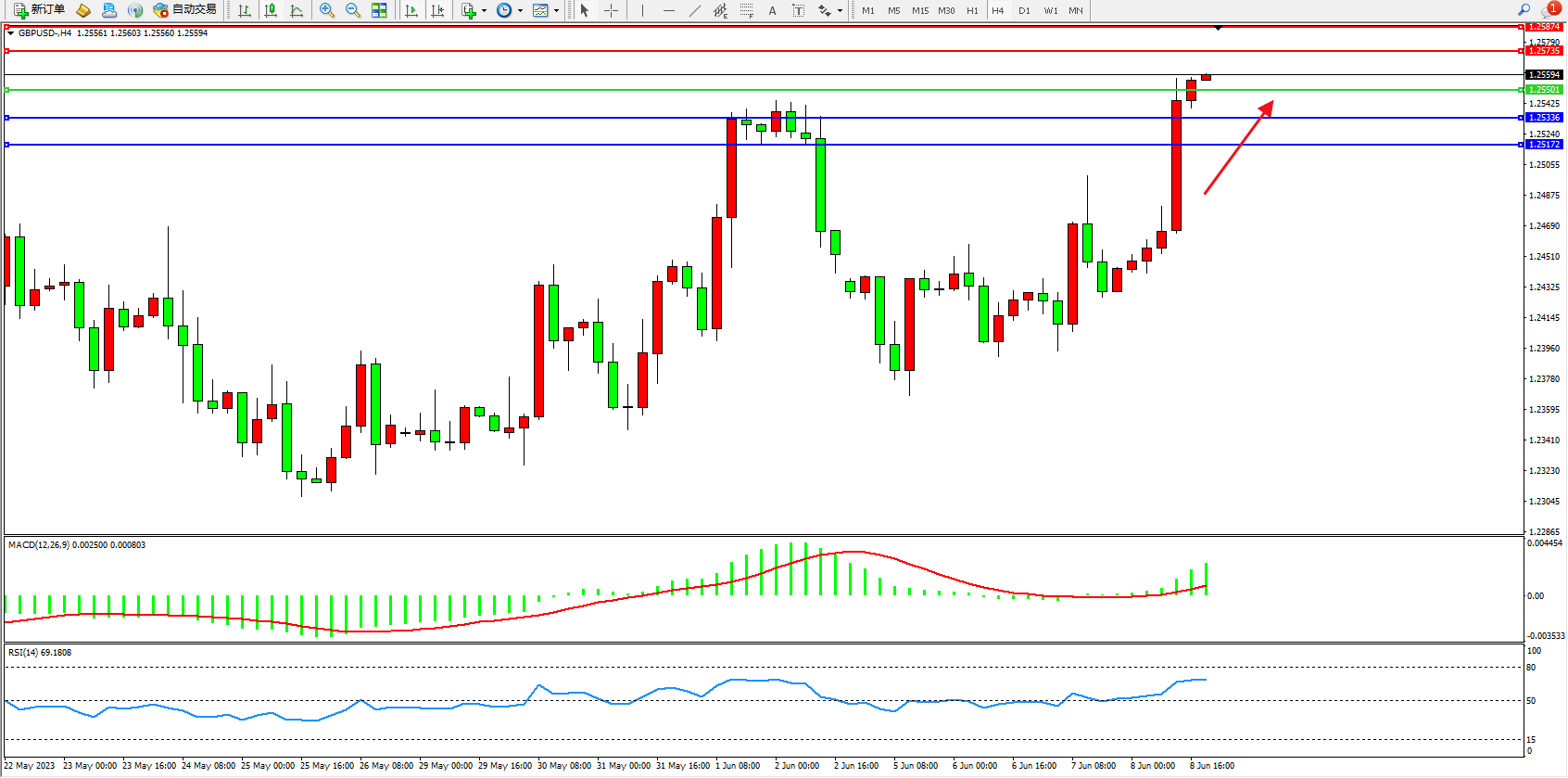 英镑美元GBPUSD ——4小时K线图显示: