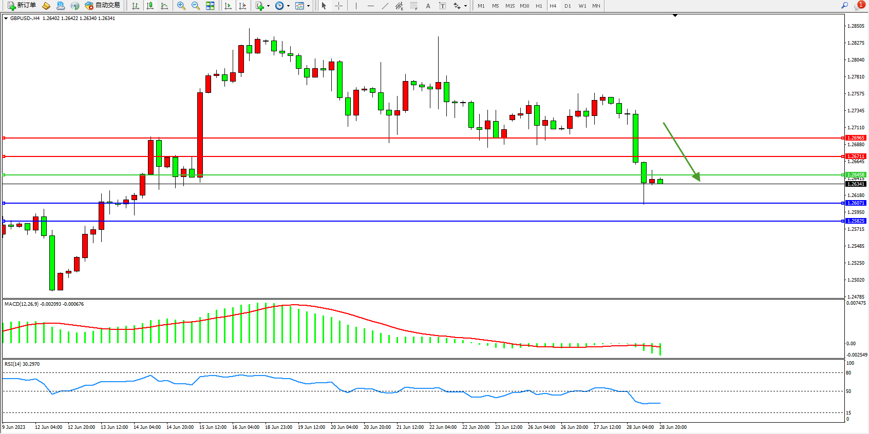 英镑美元GBPUSD ——4小时K线图显示: