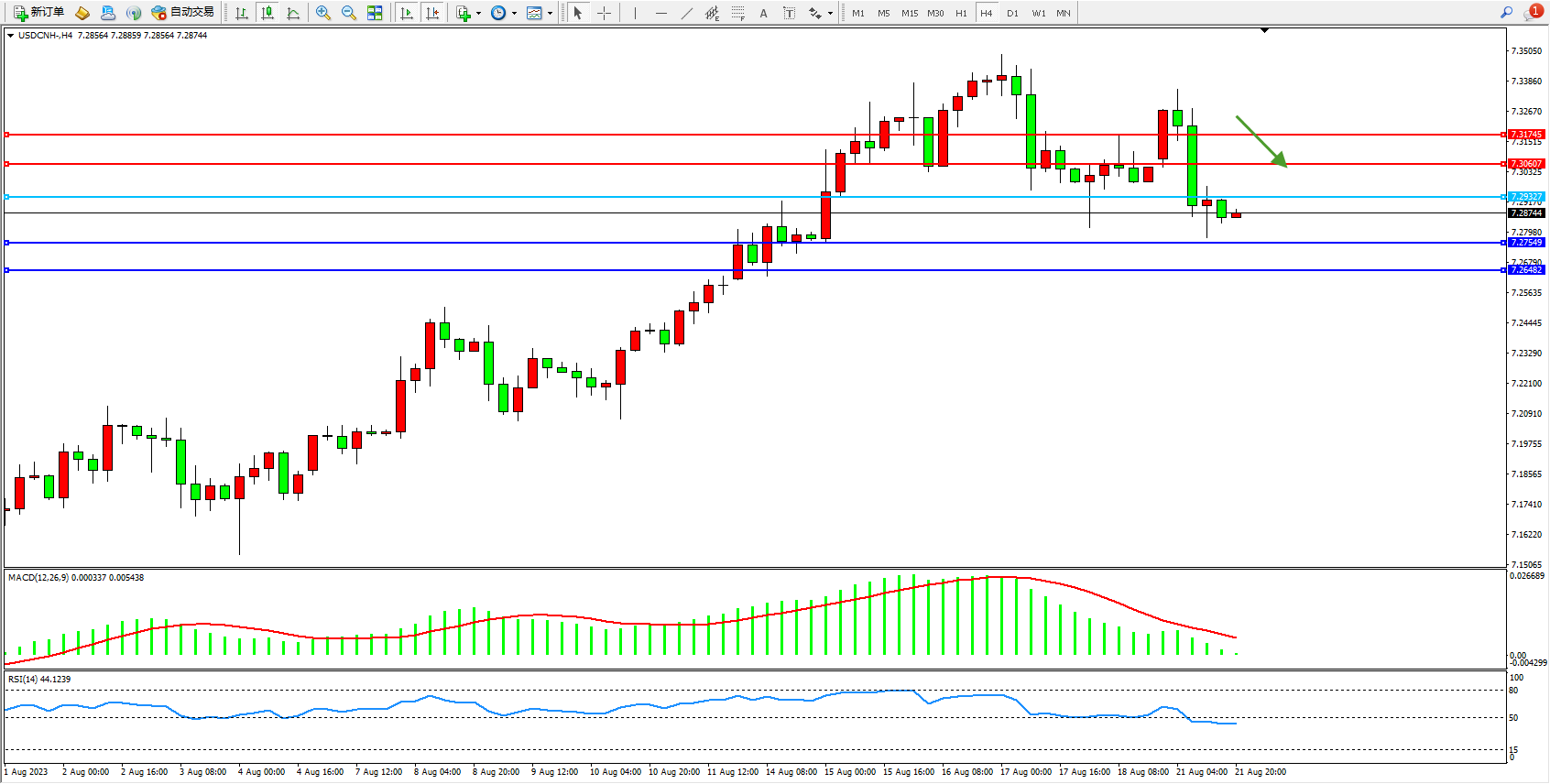 交易策略:7.29327下方看跌,目标7.27549  7.26482