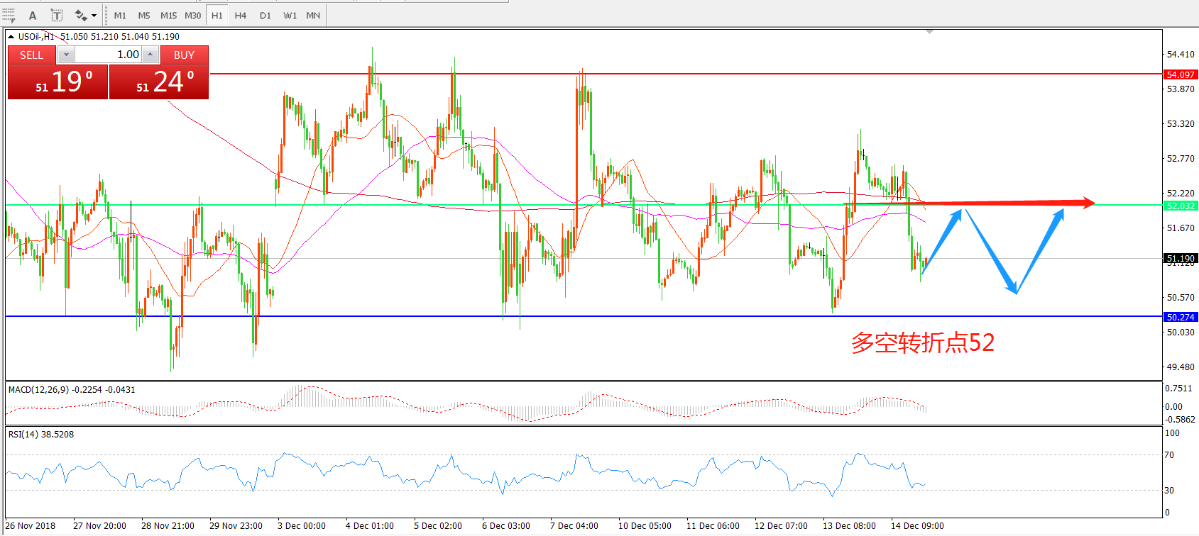 交易策略:在52.之下看跌,目标51.50 50.00