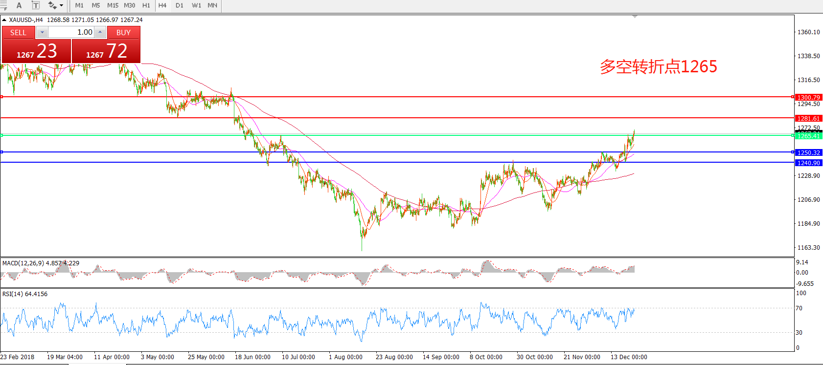多空转折点:1265.00