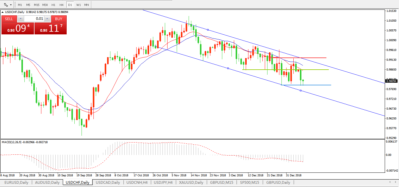 美元兑瑞郎USDCHF日线