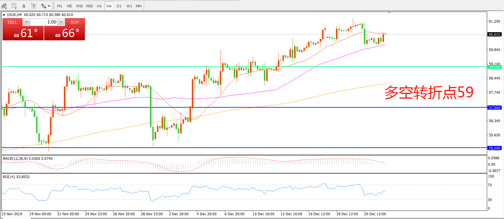交易策略:在59.00 之上看涨,目标62.00       65.00