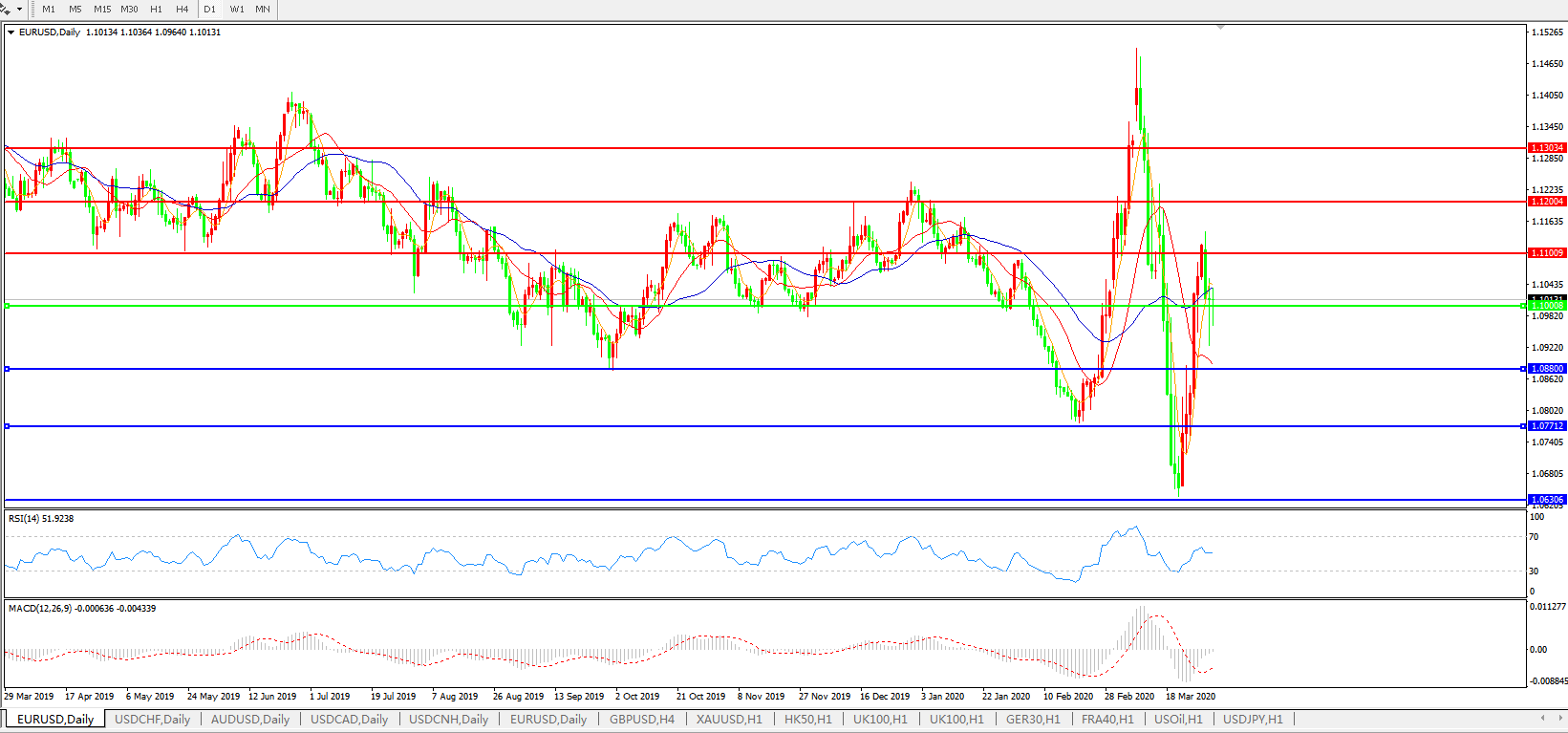 欧元兑美元EURUSD 日线图: