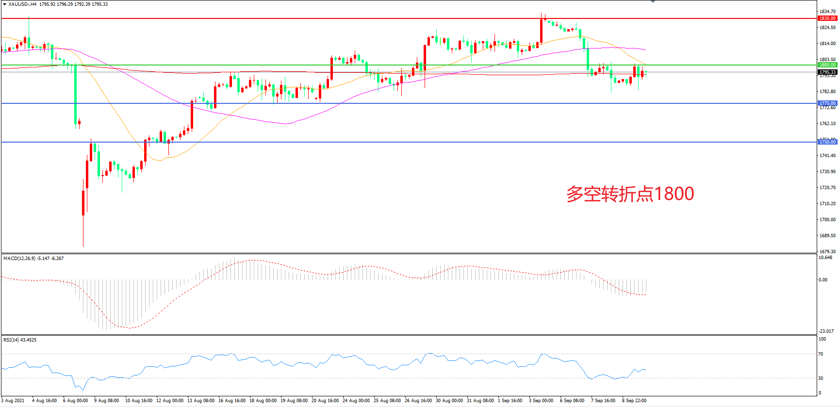 备选策略: 在1800.00之上看涨,目标1830.00            1865.00
