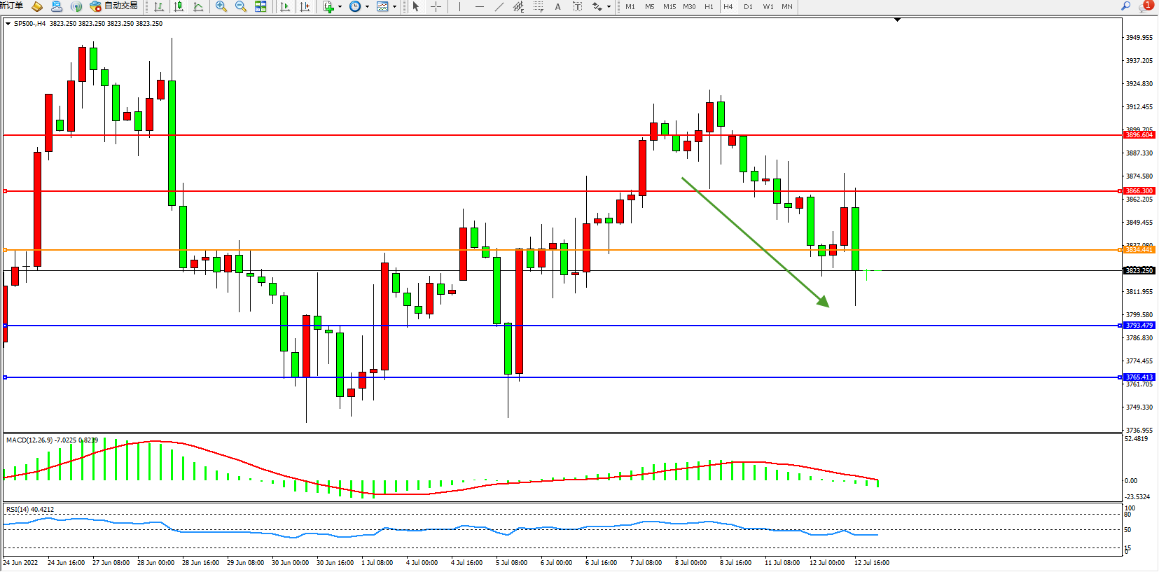 标普SP500——4小时K线图显示: