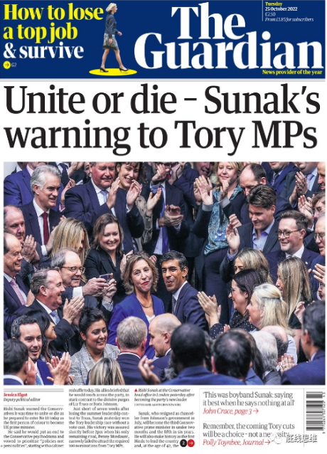 英国《卫报》10月25日报纸头条截图