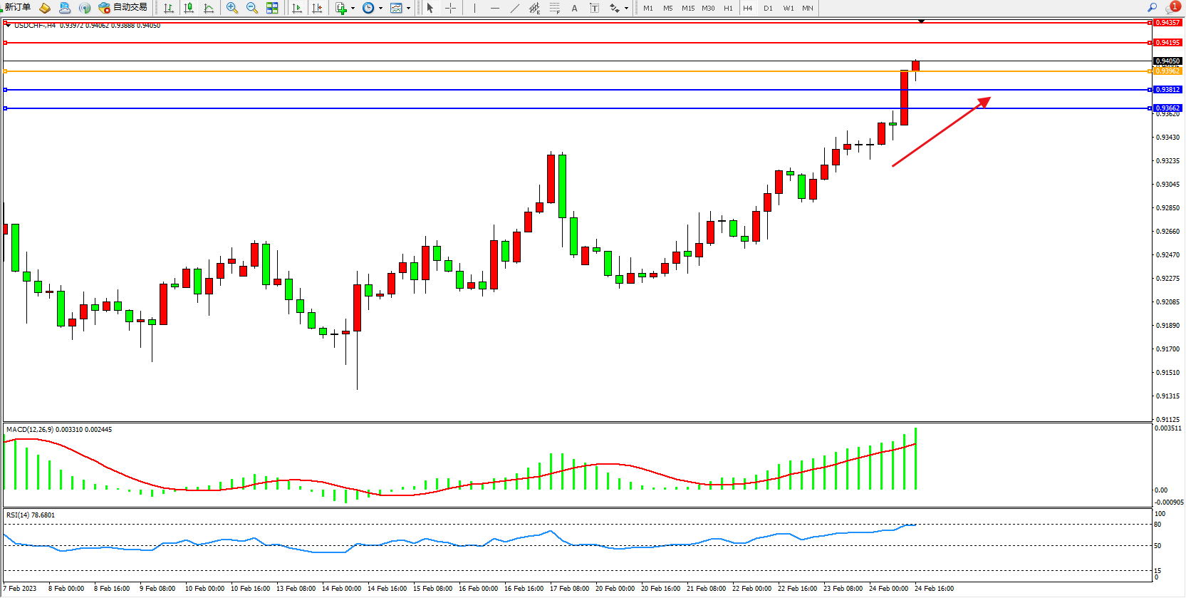 美元瑞郎USDCHF——4小时K线图显示: