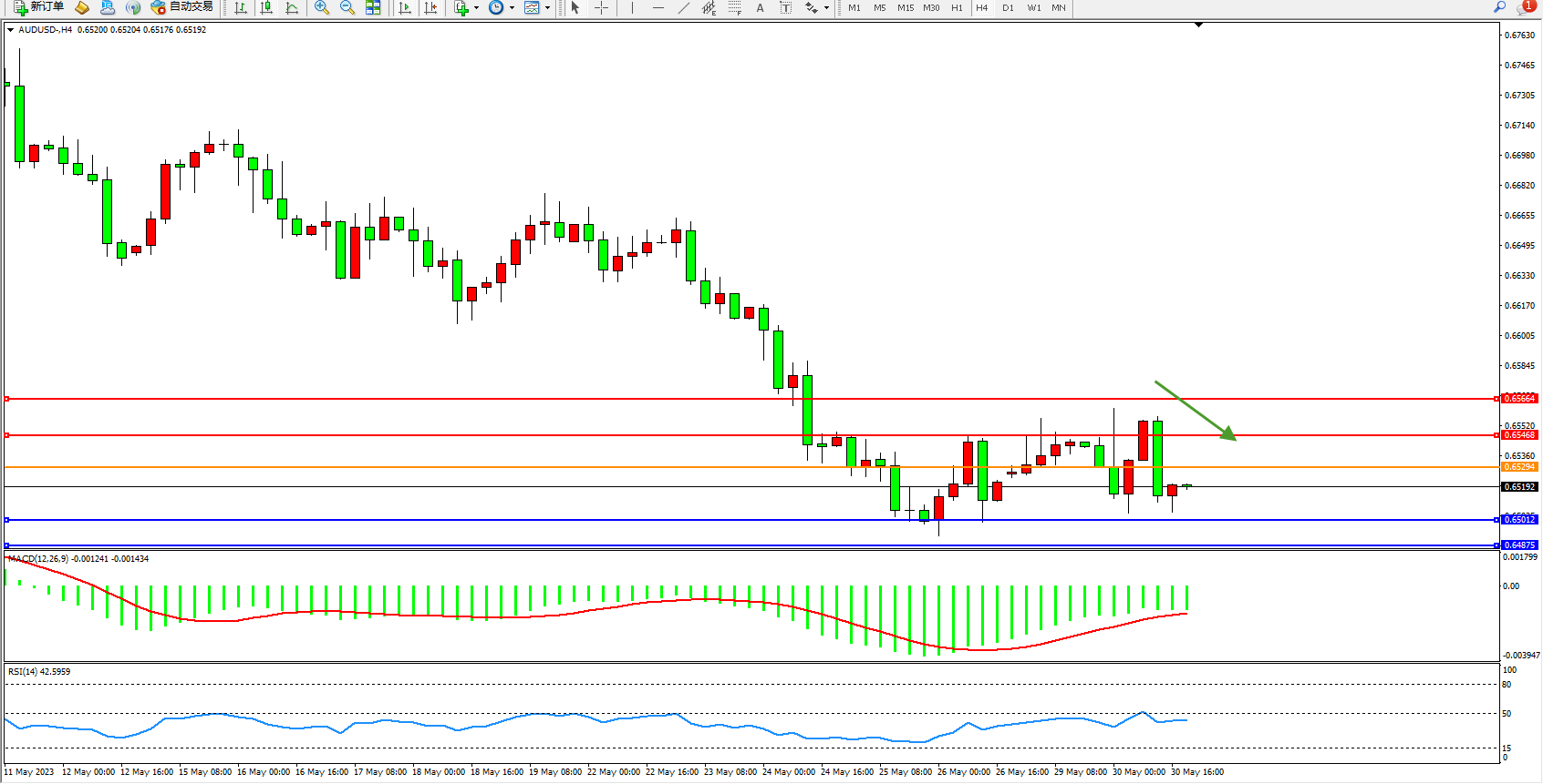 交易策略:0.65294下方看跌,目标0.65012  0.64875