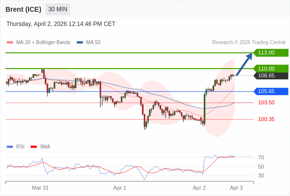 在 105.65 之上,看涨,目标价位为 110.00 ,然后为 113.00 。